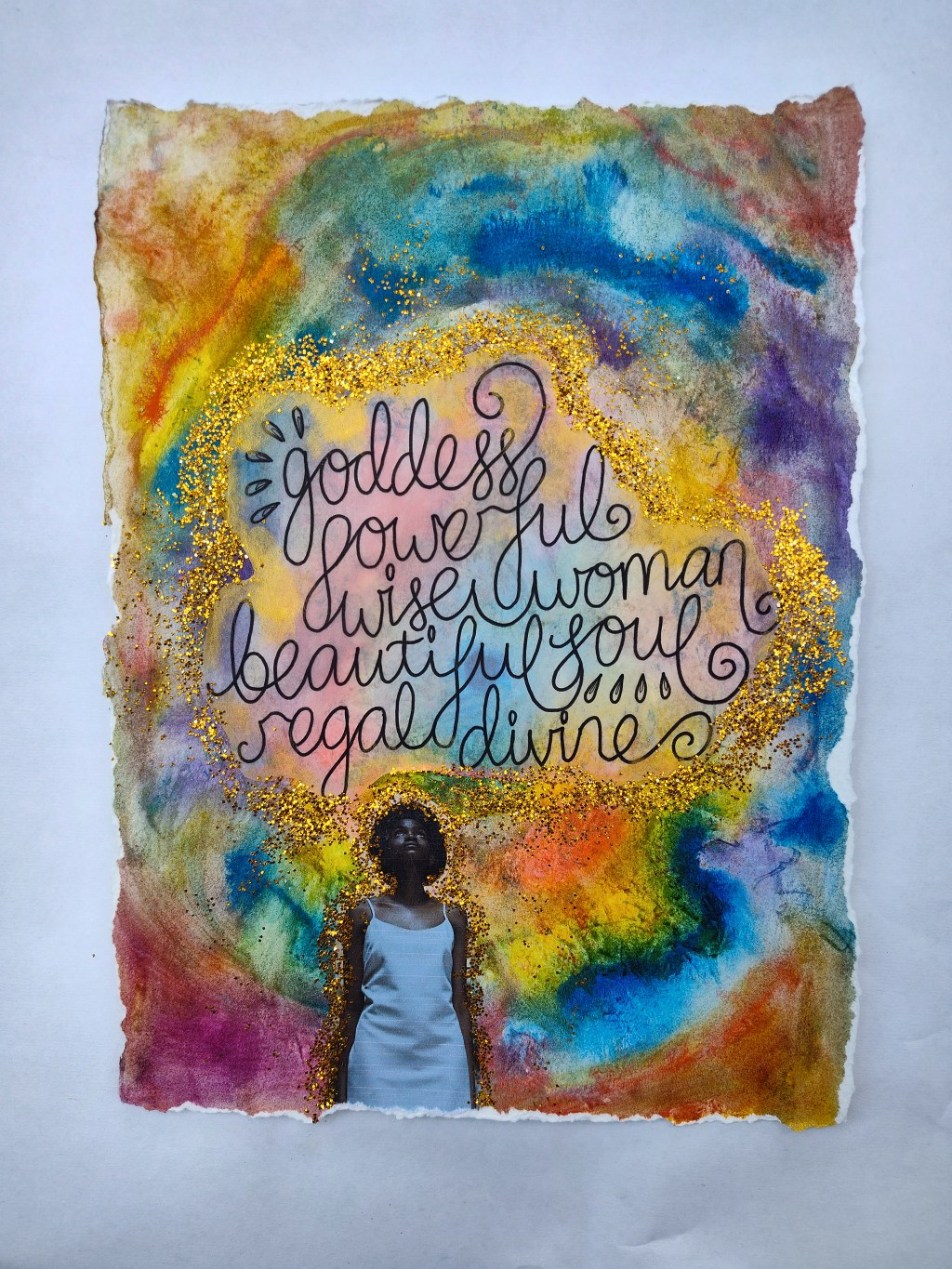 Paper, watercolor, glitter, micron pen.